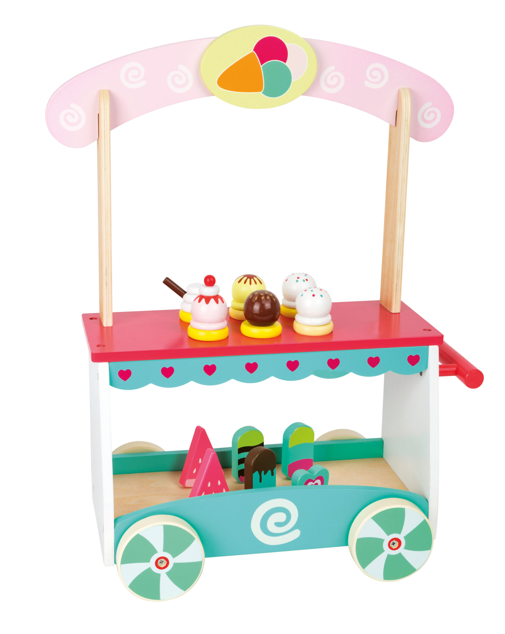 Fabricado en madera resistente, este carrito ofrece estabilidad y durabilidad, siendo adecuado para el uso diario. Incluye diferentes accesorios para simular una auténtica heladería, fomentando la coordinación mano-ojo y el aprendizaje a través del juego. Es perfecto para jugar en casa, en habitaciones infantiles o en espacios educativos.