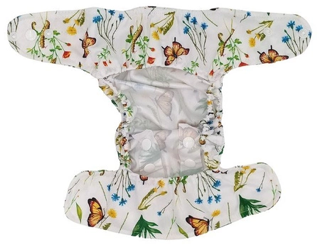 Los cobertores sirven para niños de 4 a 11 kilos. Su tamaño se puede ajustar con los snaps de la parte delantera del pañal. En el interior del cubrepañal se puede colocar gran variedad de insertos y gasas. Te recomendamos los absorbentes de bambú y evo estrechos talla 1, gasas de 60×60 o con los  predoblados pequeños de Avo+Cado.