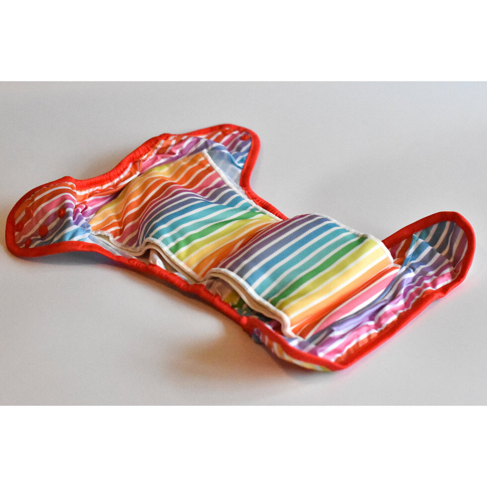 Consejo de ajuste: se ajusta como lo haría con un pañal desechable, sin necesidad de meter los elásticos de las piernas en la línea de las bragas.