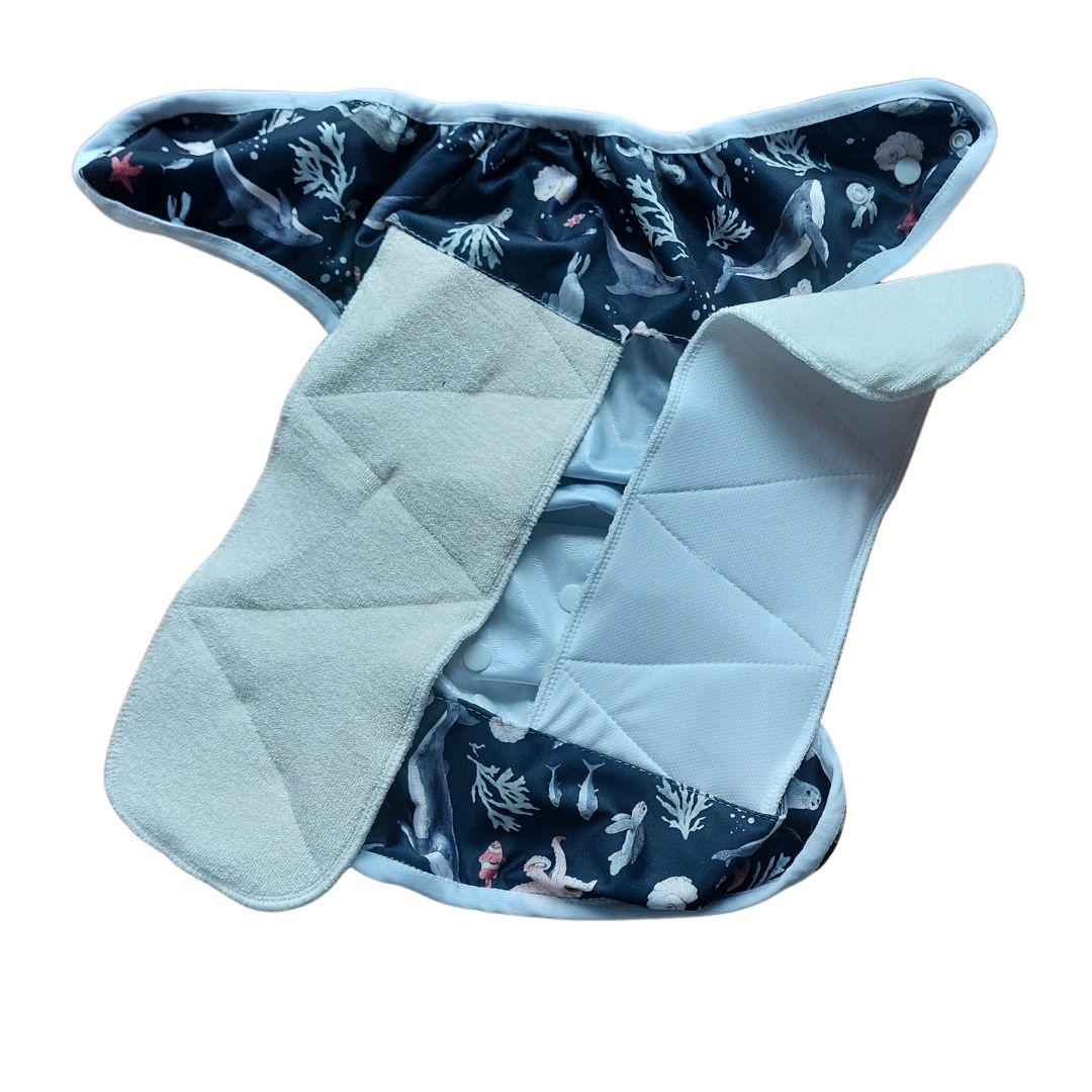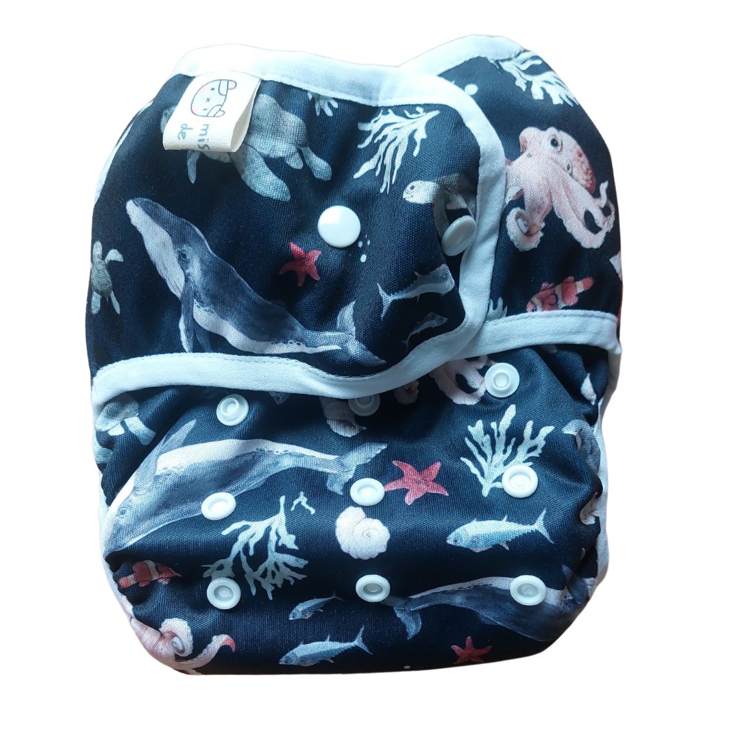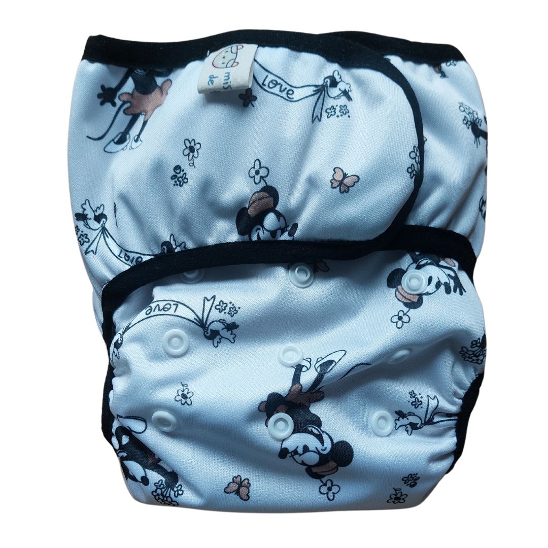 Pañales de tela todo en uno artesanales, con telas de fabricación europea o española y confeccionados en Asturias.
