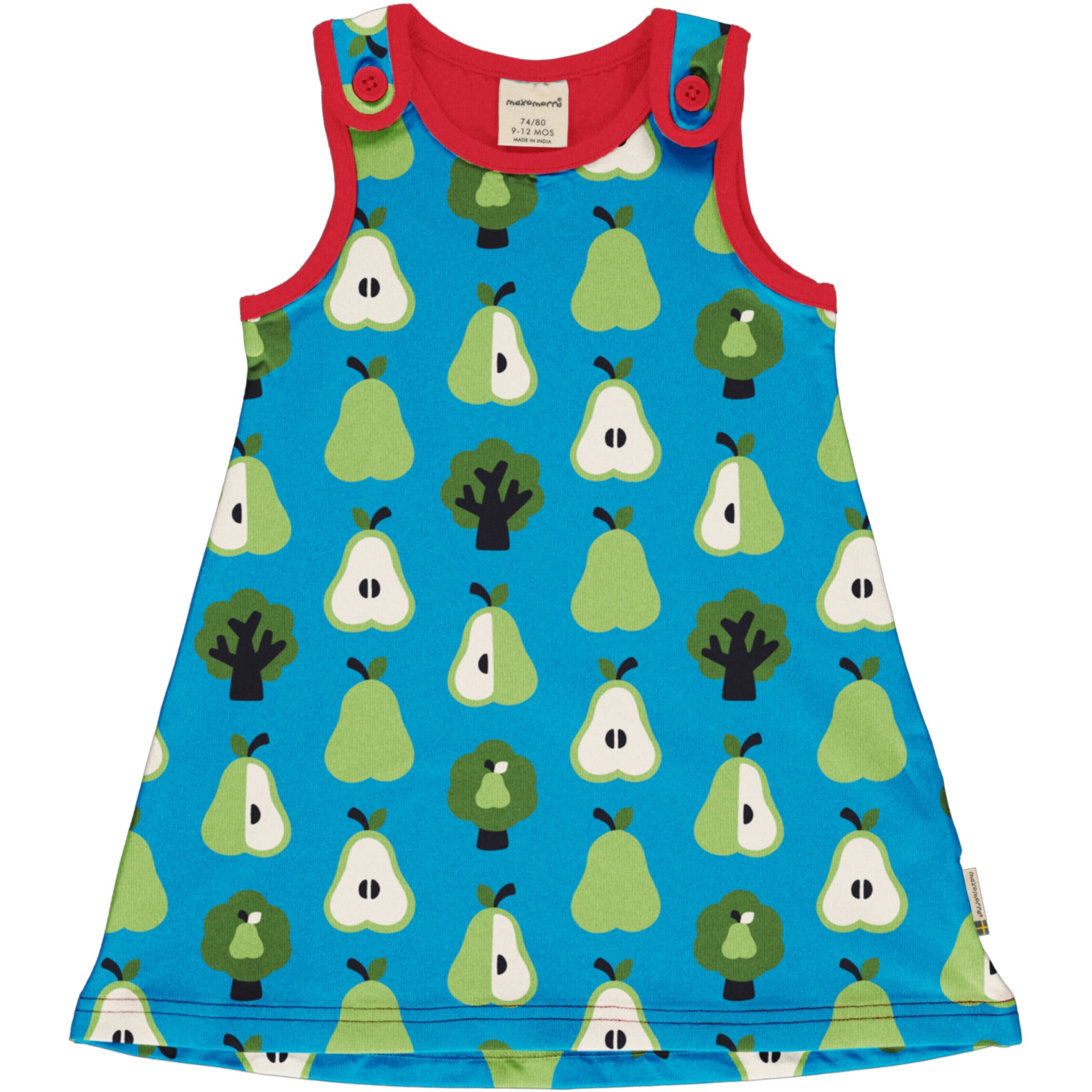 Vestido de algodón orgánico Maxomorra, diseñado en Suecia con los icónicos estampados alegres y coloridos de la marca. Una prenda cómoda, duradera y extremadamente suave, certificada por GOTS para garantizar el máximo respeto por la piel de los niños y el medio ambiente.